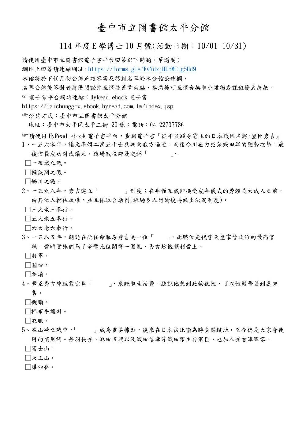 發布單位:太平分館 發布日期:2025-10-01