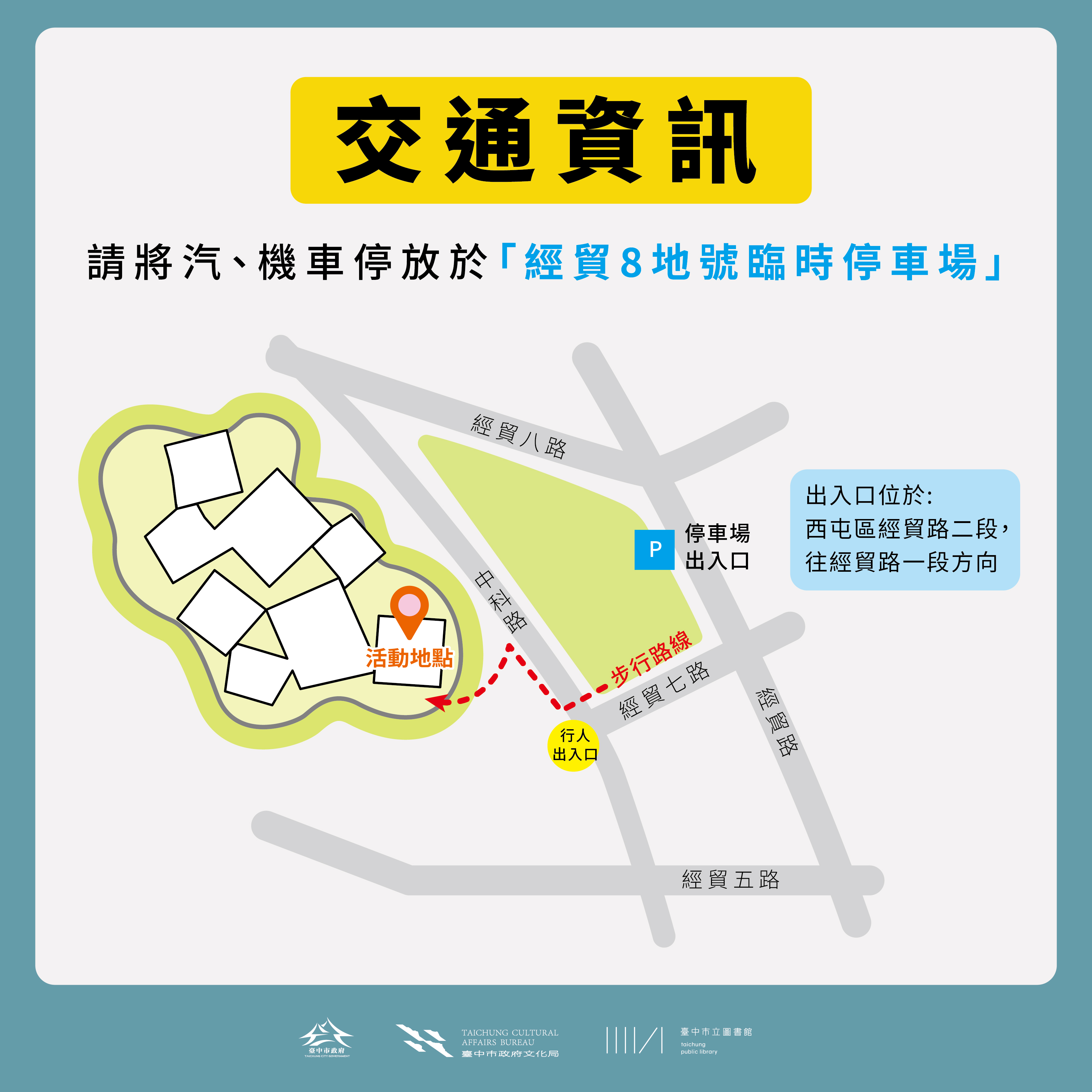 交通方式:汽機車請至經貿8地號臨時停車場停放